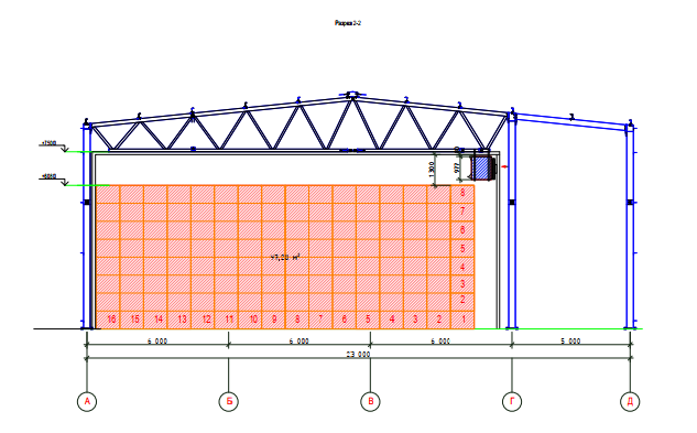 Размеры здания –23 м х 60 м х 9.9 м