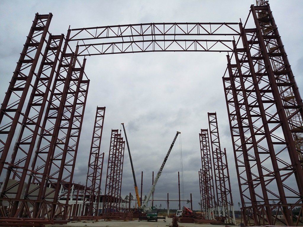 Изготовление и монтаж металлоконструкций производственно-складского здания 54 м х 54 м х 12 м Московская область, деревня Пуршево