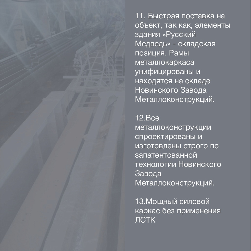 Новинский ЗМК является одним из флагманов отрасли металлообработки и производства металлоконструкций в России. Конкурентное преимущество достигается наличием мощностей, которые позволяют выполнять весь спектр работ для получения заказчиком изделия "под ключ", начиная от стадий проектирования и согласования до монтажа. Сегодняшнее состояние рынка показывает, что распределение производственных функций между разными исполнителями ведет к резкому удорожанию продукции, в том числе в связи с дополнительными транспортными издержками. Поэтому для удобства и сбережения средств заказчика в Новинский ЗМК реализован полный цикл услуг.